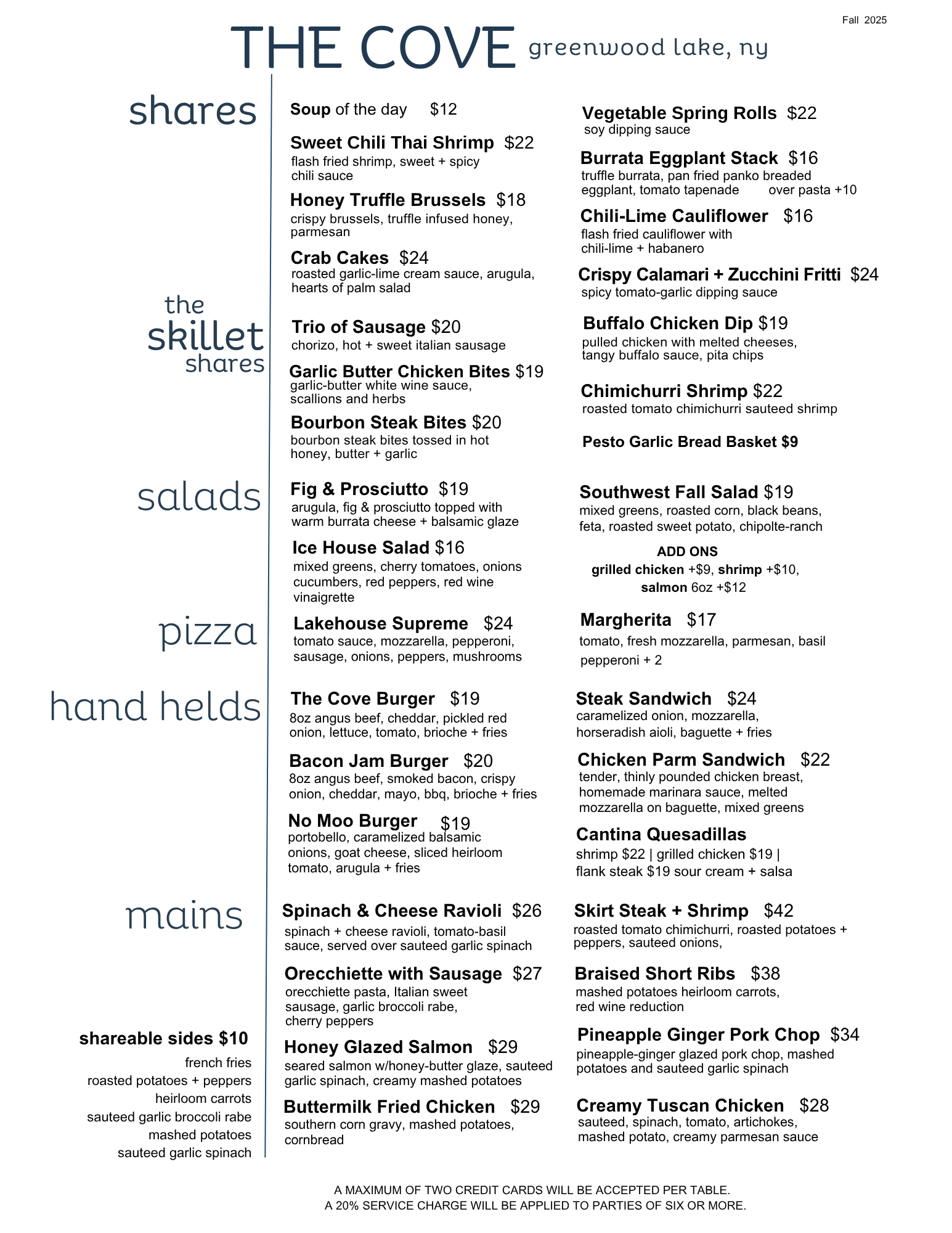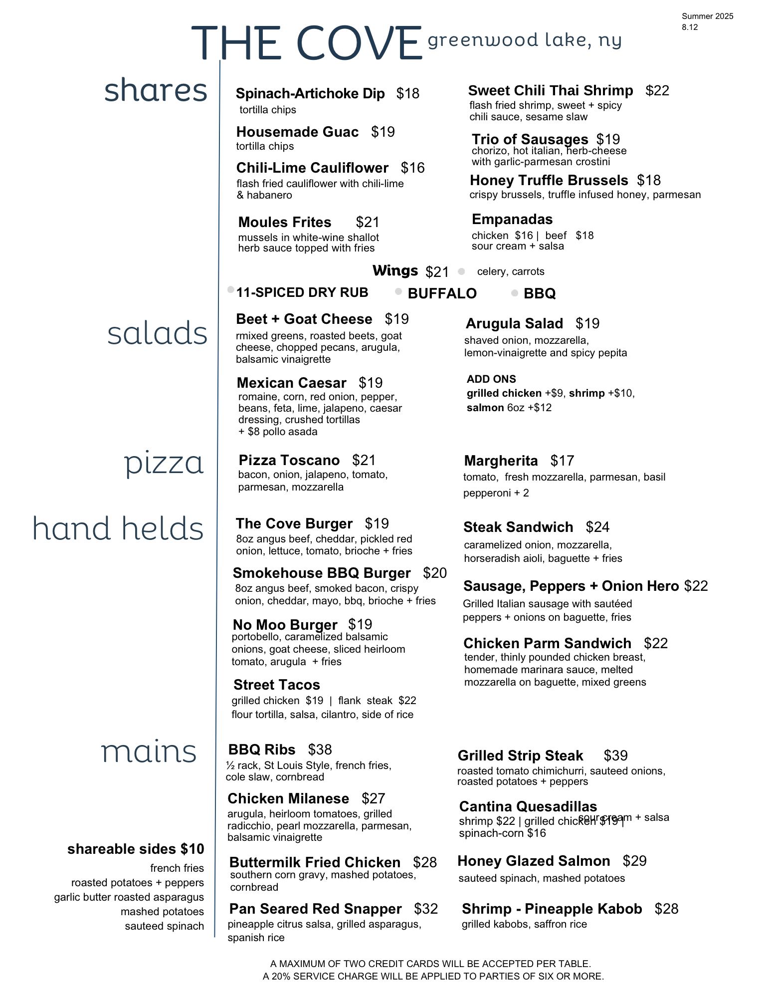 MENUS 2025 Menus Cove Castle Restaurant13 Castle CourtGreenwood Lake, NY 10925(845) 477-5599[email protected] FollowFollow OUR STORYMENUPRIVATE EVENTSWEDDINGSEVENT CALENDARALBUMGREENWOOD LAKE HISTORY